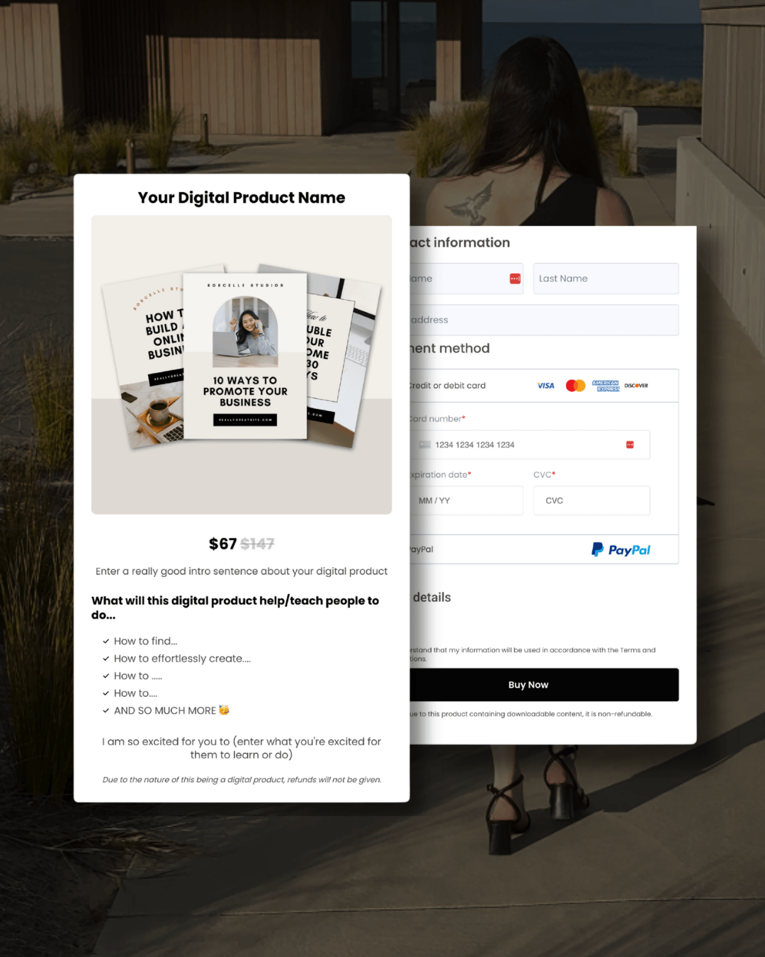 Instantly sell your digital product with this simple to set up template. Fast and fuss-free!